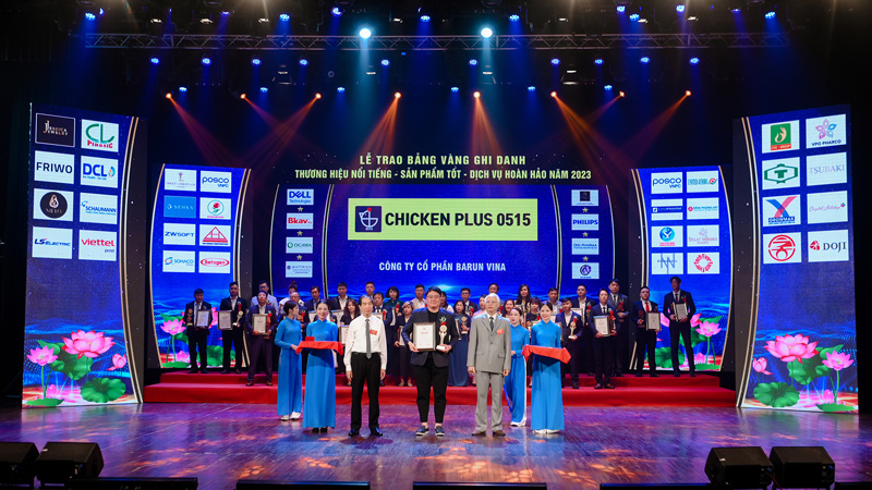 Thương hiệu Chicken Plus thuộc Công ty cổ phần Barun Vina vinh dự nhận giải thưởng Top 20 thương hiệu nổi tiếng hàng đầu năm 2023, trong khuôn khổ Lễ trao Bảng vàng ghi danh Thương hiệu nổi tiếng - Sản phẩm tốt - Dịch vụ hoàn hảo năm 2023.